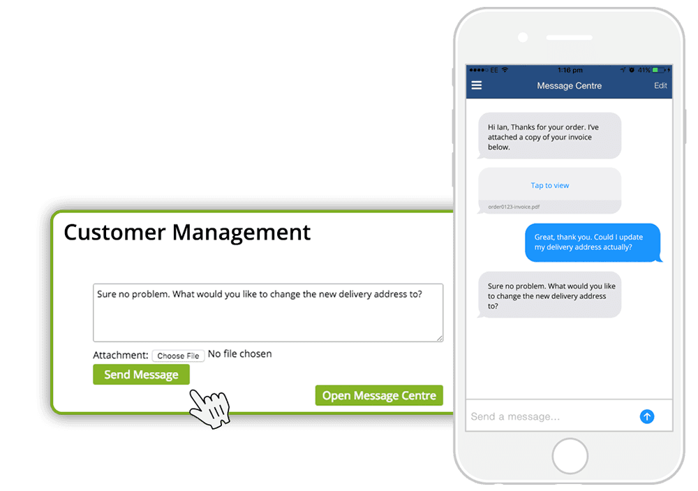 Communicate directly with individual app users with your own secure chat centre and send attachments.